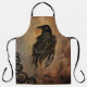 Raven sobre el fondo de las baldosas de piedra. Los engranajes del reloj alrededor del borde.
