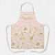 El delantal de la cocina Personalizado presenta un diseño floral abstracto en rosa y dorado con nombre y texto personalizados. Gran plataforma personalizada para mujeres.