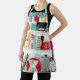 Este delantal de tela tiene un ilustracion de estanterías de cocina de estilo moderno retro de mediados de siglo. Este diseño está inspirado en todas las cosas que se encuentran en las estanterías construidas o en los muelles. Desde mermeladas y jaleas hasta verduras enlatadas, latas de especias, radio despertador retro y libros de cocina. Puede que el personalizar esté agregando su nombre a cualquier lugar de la plataforma que desee.