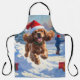Delantal Cocker Spaniel corriendo en Nieve con Gorra Navida
