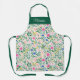 Add a touch of garden-inspired charm to your kitchen or craft space with this beautiful floral apron. Featuring a lively all-over botanical pattern in soft pinks, greens, and cheerful pops of blue and yellow, this design feels fresh, classic, and effortlessly welcoming. A rich green accent at the top and coordinating ties give the apron a polished, tailored look and can be personalized with your name for a truly custom finish. Perfect for cooking, baking, gardening, crafting, or hosting, this apron blends everyday practicality with a refined, preppy aesthetic. It makes a thoughtful gift for home cooks, entertainers, or anyone who loves pretty details in their daily routines.