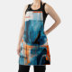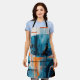Composición abstracta dinámica que combina formas geométricas, tonos naranjas y azules negrita y elementos arquitectónicos. Un diseño moderno y llamativo perfecto para la decoración y la moda contemporáneas.