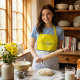 ¡Cocine con estilo con este hermoso delantal amarillo, azul marino y blanco con estampado geométrico monogramado! ¡Perfecto para regalos de despedida de soltera, cumpleaños, Día de la Madre o simplemente porque sí!