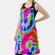Un delantal con tie dye de colores brillantes de arcoíris.