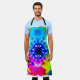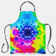 Un delantal con tie dye de arcoíris de colores brillantes.