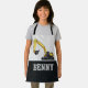 Si tu pequeño hombre quiere ayudar a trabajar en el equipo grande, necesita este delantal mecánico con una excavadora amarilla.