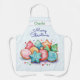 Este bonito delantal Navidad presenta un ilustracion acuarela de galletas heladas festivas en forma de estrella, círculo, árbol y copos de nieve. Luminoso y alegre para hornear dulces de temporada, intercambios de galletas o preparaciones de cocina de vacaciones, el delantal también muestra el saludo 'Feliz Navidad' en tipografía de guiones. Haga clic en 'Personalize' para introducir el nombre elegido para el toque final, creando un regalo ideal para Navidades para amantes de galletas y panaderos de vacaciones.
