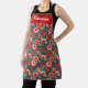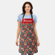 Bright coral red and delicate pink flowers with forest green foliage in a retro chinoiserie pattern creates a beautiful apron. Bright colors, very feminine, very stylish.