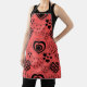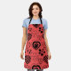Este delantal tiene el diseño de San Valentín de repetir corazones con diferentes gráficos dentro de un campo de rojo.