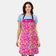 Los corazones rojos y fucsia se tambalean sobre este delantal con abandono - ¡perfecto para el El día de San Valentín, o cualquier otro día del año! Personalice su nombre en una banda rosa caliente en la parte superior.