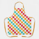 Alternating red, orange, teal, and white squares create a colorful, vibrant checkerboard pattern, conveying an energetic and playful tone.
