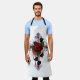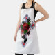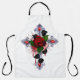 Cruz de plata con rosa roja y hojas negras sobre fondo blanco.