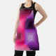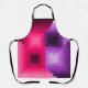 Este delantal tiene un diseño art deco de cuadrados en rosa y púrpura con cada capa superpuesta a la capa anterior.