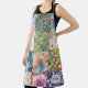 Una adorable delantal floral de caramelo, diseñada como una colcha, con cuadros de flores de tela, puntos falsos y una mesa personalizada con su nombre.