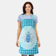 Este impresionante delantal es perfecto para regalar como regalo en una ducha de bebé. El diseño presenta una imagen gráfica de una linda abeja de bebé azul con piernas negras y ojos turbios. Tiene un cuerpo azul pálido y difuso con rayas azules brillantes y una bonita antena azul en su nublada cabeza. Sus delicadas alitas tienen un patrón azul pálido en el suelo. El diseño también incluye girasoles azules bonitos. El texto es personalizable, por lo que puede incluir el nombre de la futura madre.