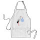 Este delantal presenta una imagen gráfica de una cigüeña blanca adorable con plumas de cola negra sosteniendo sobre un paquete azul pálido de mantas. Hay un texto azul en el bulto que dice "Baby Boy". Este diseño es perfecto para celebrar a un bebé.