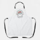 This apron features a black doodle art line drawing of a cute Santa Claus with a red hat within a circle, with “Merry Christmas” greeting above and a family name below, and with red dots separating the two. Both the greeting and family name can be personalized right on the product page.