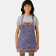 Este Spooky Cute Bats Kids Halloween Purple & Naranja Apron presenta un patrón de murciélago morado con estrellas, lunas, telarañas y texto "Spooky Cute". Terminado con bordes de malva morada, naranja y manchas negras. Personaliza con un nombre.