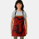 En un cuadrado hay un corte de papel de Dragón negro, colocado en el centro mirando un adorno dorado dentro del cual está el segundo dragón con ideograma. Detrás de la escena hay un fondo rojo en el que las letras decorativas y ornamentadas forman las palabras: AÑO DRAGÓN. Diseño en delantal impreso para niños. Tarjeta de felicitación coincidente, postal de vacaciones, pegatina, suministros para fiestas y más... Perfecto para el Año Nuevo Chino del Dragón 2024 o cumpleaños (personas nacidas en el Año Dragón).