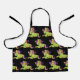 Un delantal con una imagen de unicornio de estilo Frankenstein. Colores púrpura y verde. Qué lindo.
