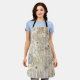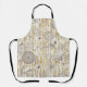 Delantal Cute Girly Gray Floral Doodles Gold Stripes Design