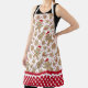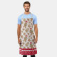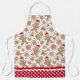 Un lindo patrón de galletas de jengibre navideño decora este delantal. El borde del delantal tiene un patrón de puntos polka rojo y blanco con rac ric. Hace un regalo divertido para los Navidades. Diseñado para ti por Blackberry Boulevard.