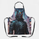 Esta intensa imagen retrata a un amenazante demonio samurai, adornado con un atuendo futurista, oscuro y una máscara con ojos y cuernos rojos brillantes. Ubicado en un ambiente urbano iluminado por neones, inspirado en la estética del ciberpunk, el personaje se encuentra entre numerosos signos y símbolos iluminados, lo que sugiere un paisaje urbano de alta tecnología y vibrante.