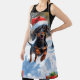 Delantal Dachshund corre en nieve con Gorra Navidad