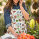 Delantal encantador de cocina campestre con gallinas ilustradas, verduras, herramientas de jardinería y elementos de granja. Perfecto para los amantes de cocinar, hornear, jardinería y hogares rústicos. Un diseño rústico de granja ideal para criadores de gallinas, jardineros y cocinas acogedoras. Obra de arte original de Caroline Bonne Müller