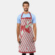 Delantal de Navidad con Rayas de Caramelo con rayas verdes, rojas y blancas, un gran caramelo de bastón y un pequeño contorno de baya de acebo. ¡Perfecto para hornear en las fiestas!