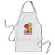 Un delantal que ofrece un ilustracion de un tarro de gumballs, de tres lollipops, del caramelo del palillo, de un pedazo de chocolate, y de una magdalena. Personalice con su nombre.