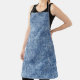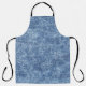 Delantal Denim azul de lavado con ácido, textura de cierre.