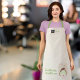 Excelente diseño para el personal del spa o salón de belleza. Fondo beige con un patrón general sutil. Añade tu logo y nombre en la parte superior, tu lema en verde en la parte inferior al lado de una imagen de una mujer recibiendo un tratamiento facial, con pepinos sobre los ojos. Tonos verdes y marrones. Las correas del delantal son del mismo color que el verde del texto. Forma rápida y elegante de designar un uniforme de personal. Perfecto para un cosmetólogo, estético, manicurista o estilista.