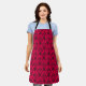 Este delantal tiene un diseño art deco de diamantes con líneas verticales y diagonales y círculos en un campo de rosa caliente.