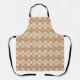 Este delantal tiene un diseño art deco de diamantes superpuestos en marrón y marrón en un campo de blanco.