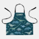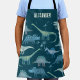 Montones de dinosaurios azules, Tyrannosaurus rex, Spinosaurus, Stegosaurus, Diplodocuments y Triceratops sobre un fondo verde verde azulado oscuro. Cambie el nombre a personalizar. Arte original de Nic Squirrell.