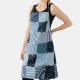 Diseño de caldera. Patrón de retracción inexpugnable a partir de cuadrados cosidos con diferentes ornamentos geométricos. Impresión textil en colores azules.