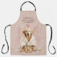 Moderno, elegante y elegante delantal de negocios para perros. Diseño con su nombre y título, acuarela perro en un icono de bata con elementos florales en un fondo de color negro. Perfecto para un negocio de mascota.