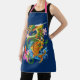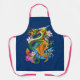 Un dragón chino verde con un pez koi naranja con flores de loto y flores de cerezo en un fondo azul oscuro