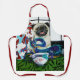 Un lindo perro de cerdo y un dragón chino están sentados frente a un tazón vacío de arroz esperando alegremente que le den de comer.