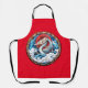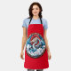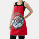 En un estilo de vidrieras, un dragón asiático, una bestia mítica, en tonos rojos y azules.