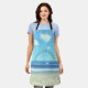 Scenic photo of the beach with sand and the words "dwell on beauty apron