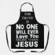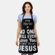 El amor de Jesús Apron. ¿Buscando el regalo perfecto para los cristianos en tu vida? ¡No busque más que este hermoso delantal! Jesús es el mejor ejemplo del amor, y ¿qué mejor manera de mostrar tu fe que usando Su palabra en tu corazón? Este delantal está hecho con materiales de alta calidad y cuenta con las inspiradoras palabras: "Nadie te amará más que Jesús". ¡Es la manera perfecta de mostrar tu fe y difundir el mensaje del evangelio!