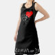 Imagen de notas musicales blancas en forma de corazón y corazón rojo contra el fondo negro. Una hilera de notas musicales blancas en la parte inferior. Un elegante delantal impreso para todos. ¡Personalizable. Puede cambiar la imagen. Si necesita cambiar el color del fondo, la ubicación de la imagen, por favor, utilice el botón "Editar diseño" o la opción "Hacer clic en el personalizar más adelante". No olvide elegir el tamaño del delantal y el color de la correa. ¡Sólo personalizar y compra uno, diviértete y sé feliz!