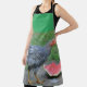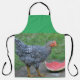 Este divertido delantal cuenta con una gallina de roca con barra llamada Janet, comiendo sandía.