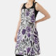 Elementos botánicos, hojas y flores, arte acuarela en morado.