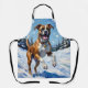 Delantal Energetic Boxer Dog Leaping in Winter Snow Fun