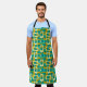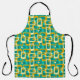 Este delantal tiene un diseño moderno de mediados de siglo de rectángulos redondeados con ovales en el interior de colores retro de turquesa, verde azulado, blanco roto y dorado. Si quieres el mismo diseño con colores diferentes, envíame un mensaje.
