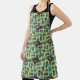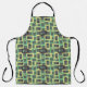 Este delantal tiene un diseño moderno de mediados de siglo de rectángulos redondeados con ovales dentro de tonos retro de gris oscuro, amarillo pálido y marisco sobre un campo de gris claro. Si quieres el mismo diseño con colores diferentes, envíame un mensaje.