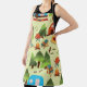 Escena de camping - caravana, camping, chimenea, alfombras, árboles, pájaros. Patrón vintage sin foco.